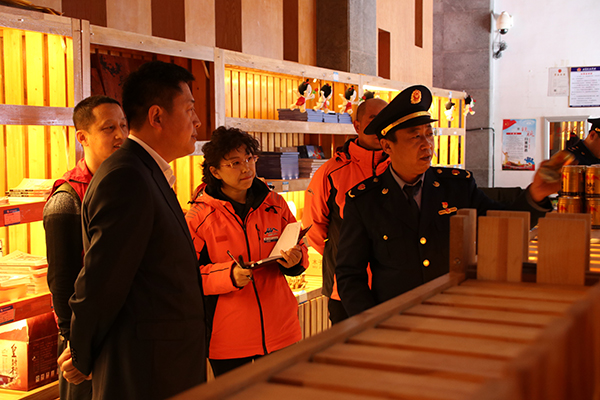 檢查組一行檢查了各經(jīng)營網(wǎng)點營業(yè)執(zhí)照、食品供貨商資質(zhì)證明及進(jìn)貨臺賬、食品保質(zhì)期及貨簽對位等情況,重點檢查了是否存在攬客兜售、強買強賣、店外店、超范圍經(jīng)營等旅游亂象。