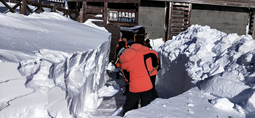 大雪足足下了兩天,給景區(qū)的清雪防滑工作造成了很大的壓力。此刻的天池游覽棧道已經(jīng)被大雪完全覆蓋,個(gè)別區(qū)域和通往衛(wèi)生間路段的積雪有一人多高。為了能讓天池景點(diǎn)盡早開(kāi)放,主峰管理部經(jīng)理吳金明決定,先將衛(wèi)生間和B區(qū)游覽棧道清開(kāi)1米寬,然后在不影響游客正常游覽的情況下,再拓寬至2米,以此來(lái)保證游覽棧道的最佳通行能力。
